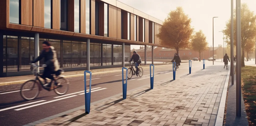 Además, existen soluciones multifuncionales como el banco urbano con aparcabicicletas, que combina descanso y movilidad sostenible en un solo elemento. Este tipo de mobiliario es perfecto para zonas de entrada al parque, áreas deportivas o puntos de conexión con carriles bici.