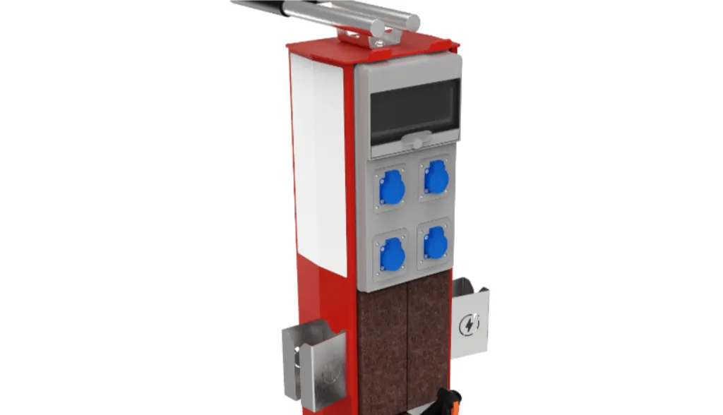 - Módulo de carga: dispone de 2 soportes para baterías y 4 tomas de enchufe, conectado a un cuadro eléctrico que gestiona la recarga.